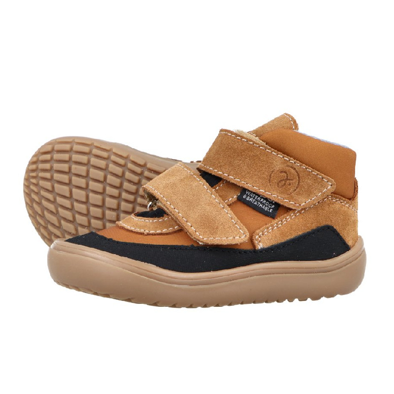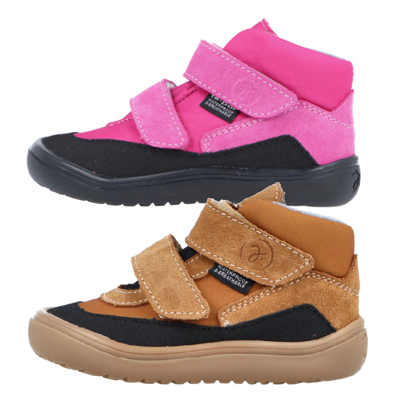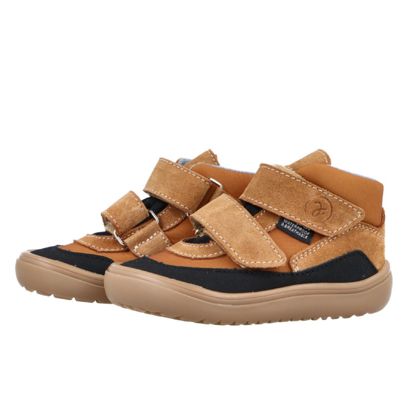 Celoroční barefoot obuv vyššího střihu. Svrchní materiál tvoří kombinace broušené kůže a příjemného, poddajného softshellu. Po obvodu jsou boty chráněné gumovým zesílením, odolným proti odření a okopání. Nepromokavost zajišťuje kvalitní, prověřená, membrána TEPOR a v kombinaci s kvalitními svrchními materiály má obuv i dobrou prodyšnost. Jazyk je vysoko prošitý, i v pořádných kalužích jsou tak boty chráněné před nabráním vody či bláta dovnitř. Uvnitř je obuv vypolstrovaná měkkou, mírně hřejivou textilií s ventilačními kanálky pro absorpci potu.