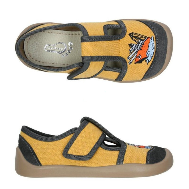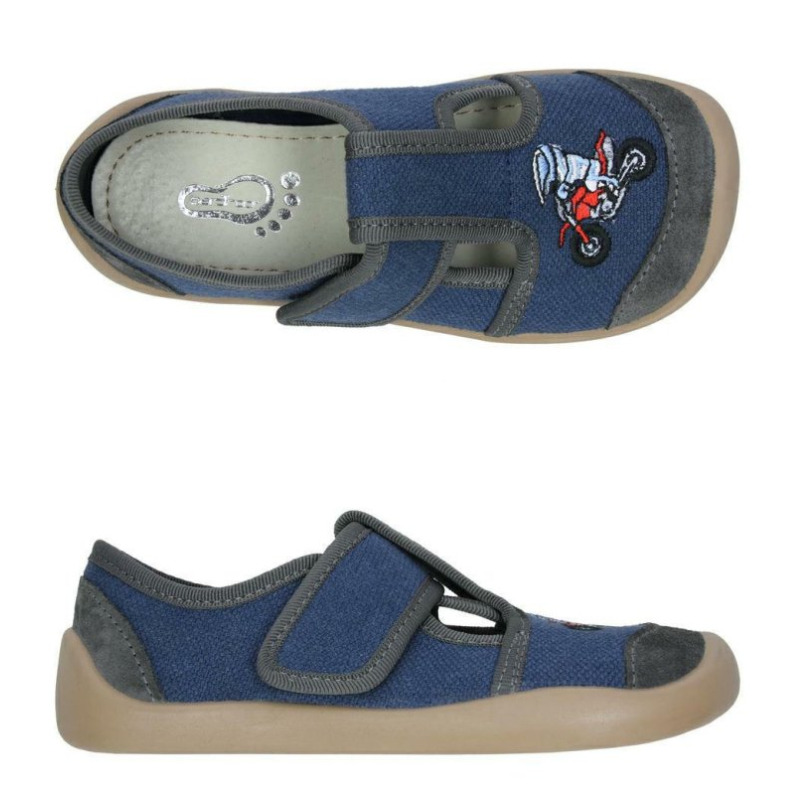 Pohodlné barefoot bačkůrky 3F šité dle kritérií bosého a minimalistického obouvání, s atraktivním vyšitým obrázkem a zapínáním na suchý zip.