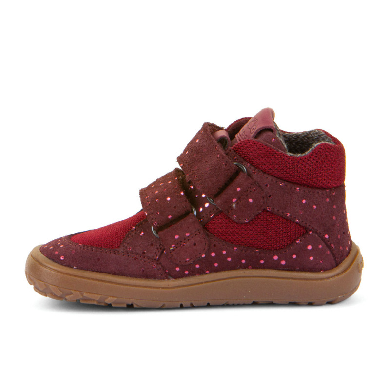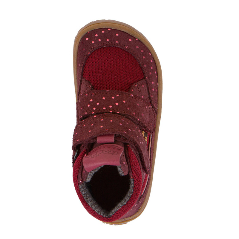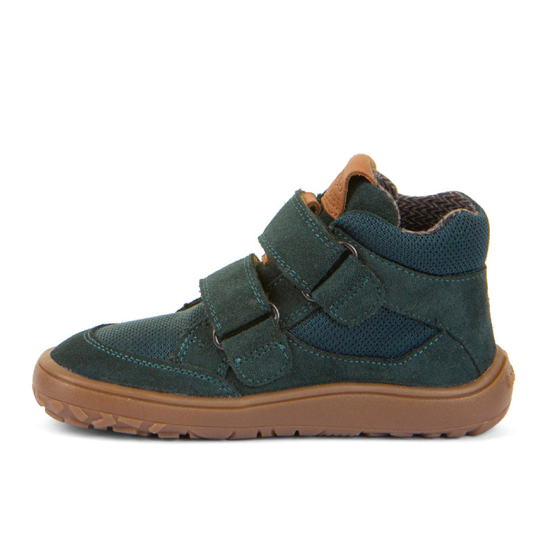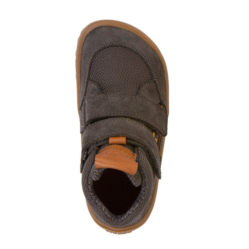 Kotníkové boty Froddo Barefoot G3110266 v kombinaci kůže-textil s jednoduchým, lehce outdoorovým designem. S podrážkou z přírodní gumy se vzorkem a lehce zateplenou podšívkou s voděodolnou membránou jsou perfektní na chladnější podzim, mírnou zimu a začátek jara. Bota je nepromokavá a prodyšná zároveň. Všechny svrchní materiály jsou z výroby naimpregnované. Nová verze podrážky se vzorkem, který je upravený, aby se v patní části nesešlapával.