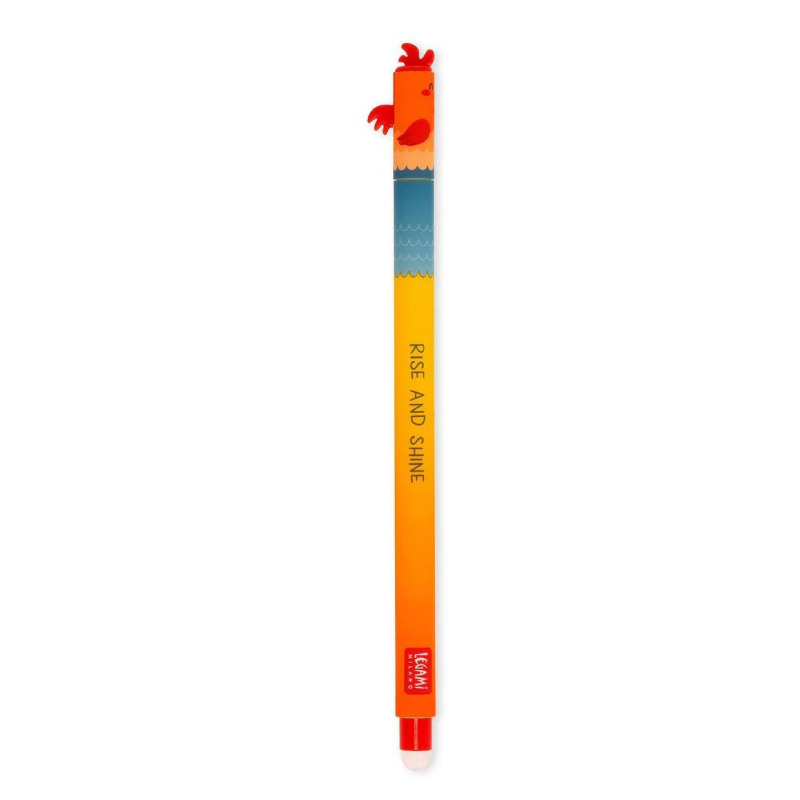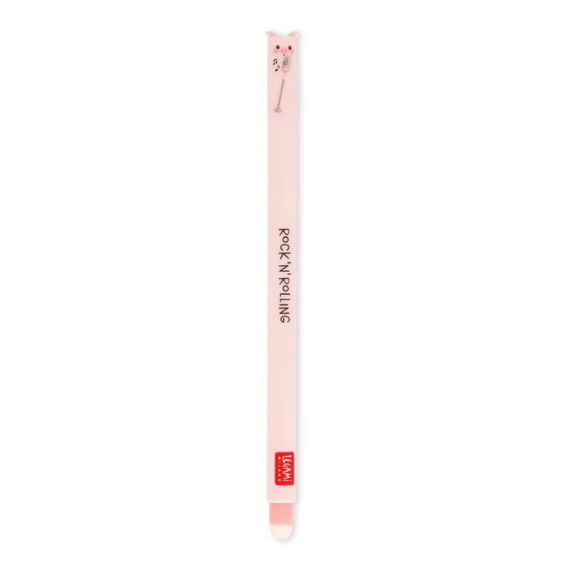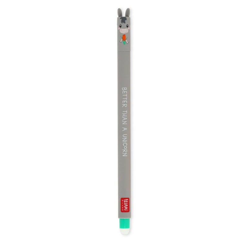 Gelové pero s unikátním inkoustem, který lze vymazat plastovým koncem pera a okamžitě znovu psát na vymazané místo.