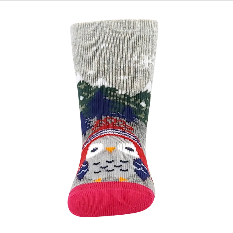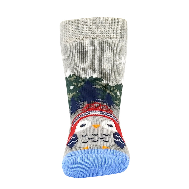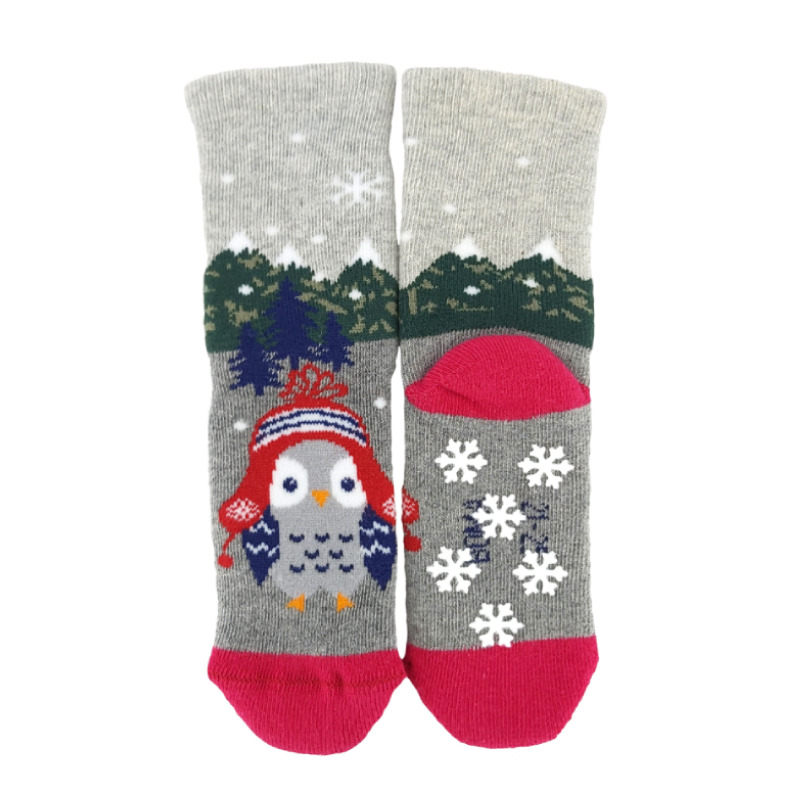 Obrázkové ponožky mají jemný lem. Silnější ponožky jsou z bavlněného froté s podílem elastanu, takže jsou příjemné na pokožce ale zároveň jsou pružné a dobře si drží tvar. Aby ponožky netlačili, mají pro maximální pohodlí špičku spojenou jemným řetízkováním. Chodidlo mají opatřené protiskluzovými ABS body ve tvaru vloček.