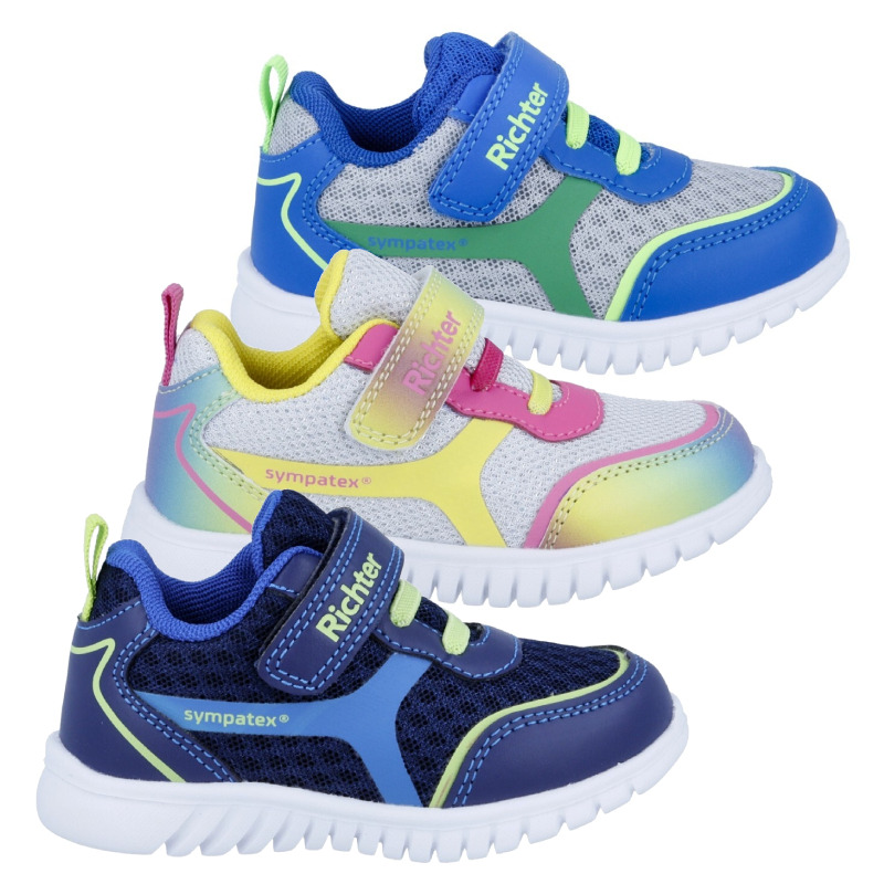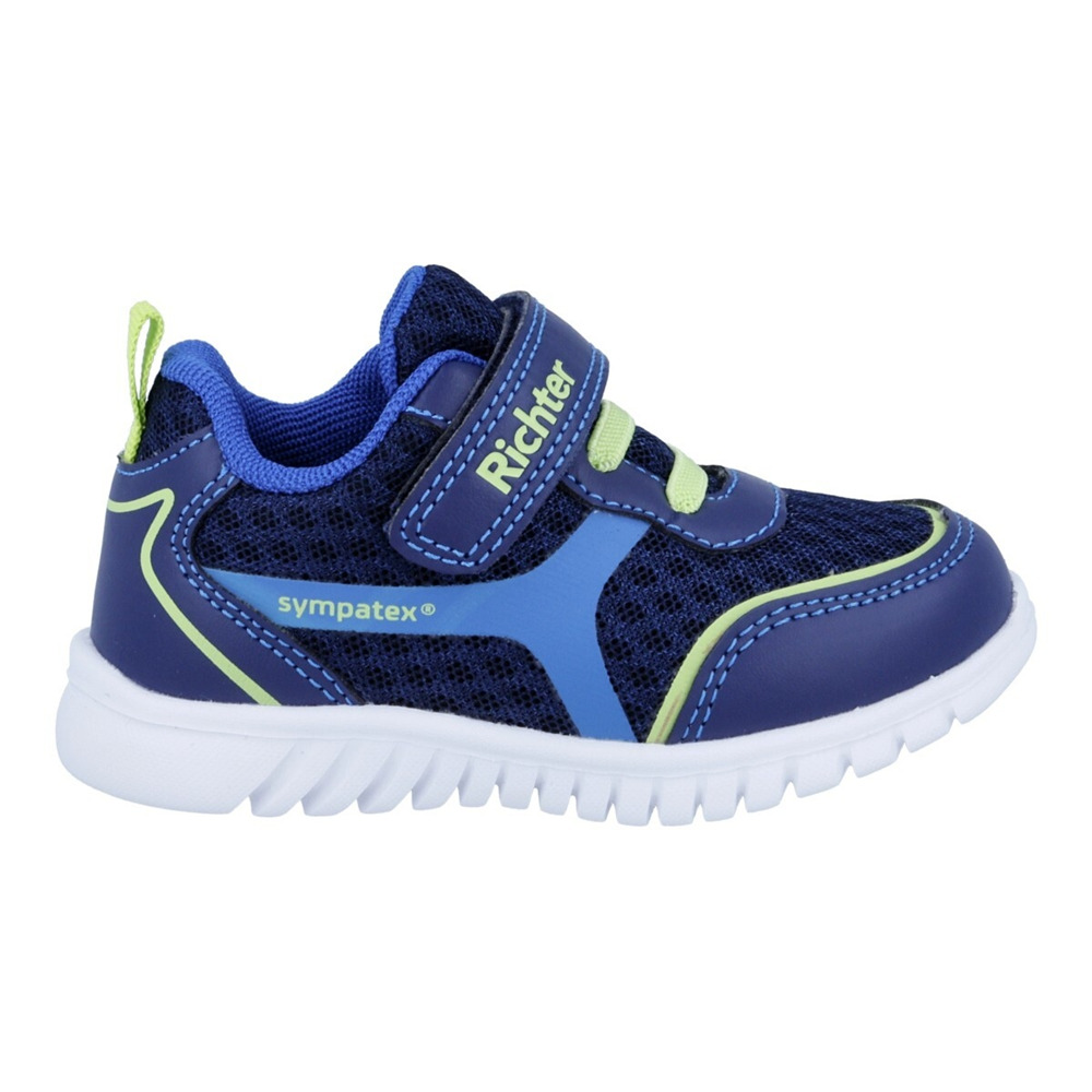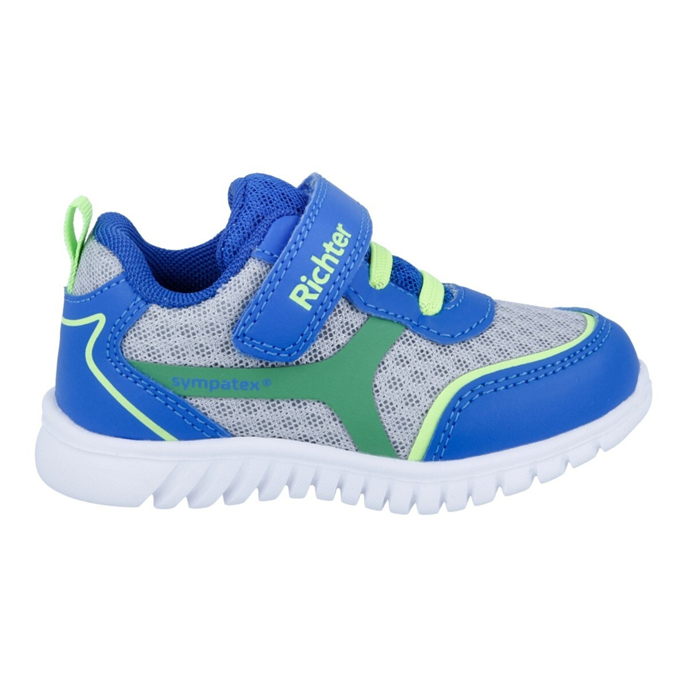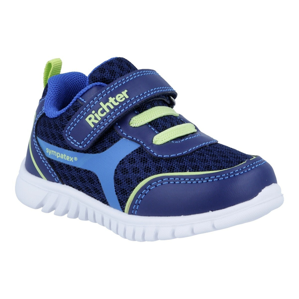 Nízká ultralehká sportovní teniska Richter WALLEY na suchý zip s membránou Sympatex. Vzdušný svršek z pevné síťoviny zajistí dobré odvětrání nohou. Bota je vybavena vyjímatelnou vložkou. Upevnění na noze je vyřešeno pomocí suchého zipu.