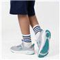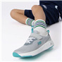Lehký synteticko-textilní svršek se příjemně přizpůsobí dětské noze a poskytne prodyšnost i stabilitu při sportovních aktivitách.Protiskluzová podrážka podporuje přirozený odraz, mírně vyvýšená a pevnější část pod patou dodává jistotu při došlapu a pomáhá správnému vedení kroku. Prostorná špička nabízí dostatek místa pro prsty, aby se mohly volně hýbat a přirozeně pracovat.