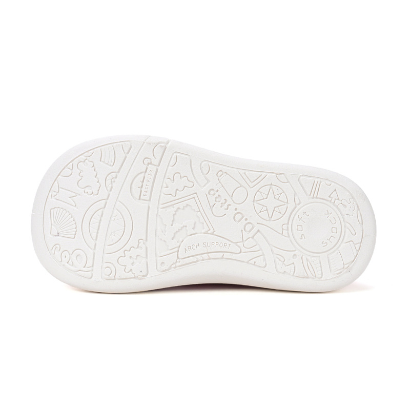 Gumová podrážka poskytuje dobrou přilnavost na různých površích a odolává opotřebení při dětských hrách. Nízký profil podrážky podporuje stabilitu a přirozený pohyb chodidla během běhu i skákání.
