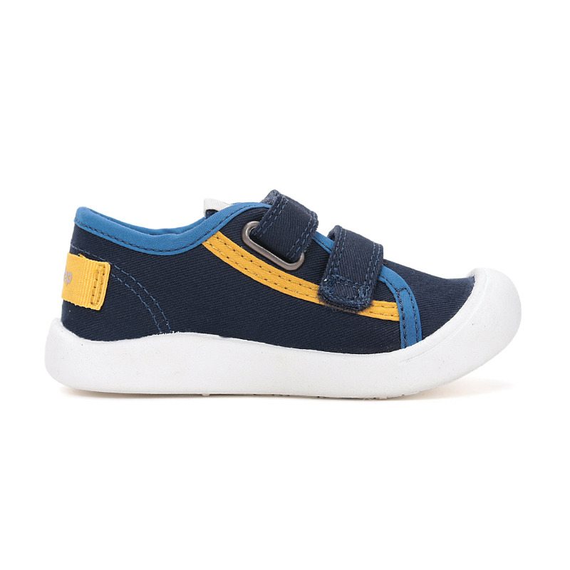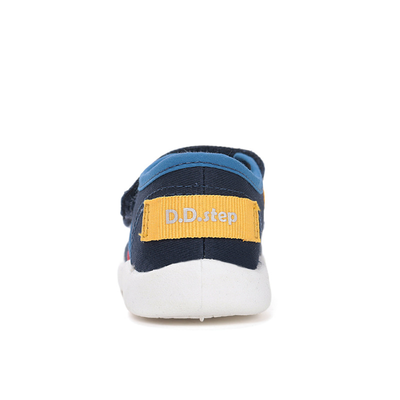 D.D.step přináší lehké plátěné tenisky s textilním svrškem, praktickým zapínáním na suchý zip a gumovou podrážkou pro bezpečný krok. Kožená stélka zvyšuje komfort a pomáhá odvádět vlhkost, takže jsou boty vhodné do běžného každodenního provozu a aktivní hry.