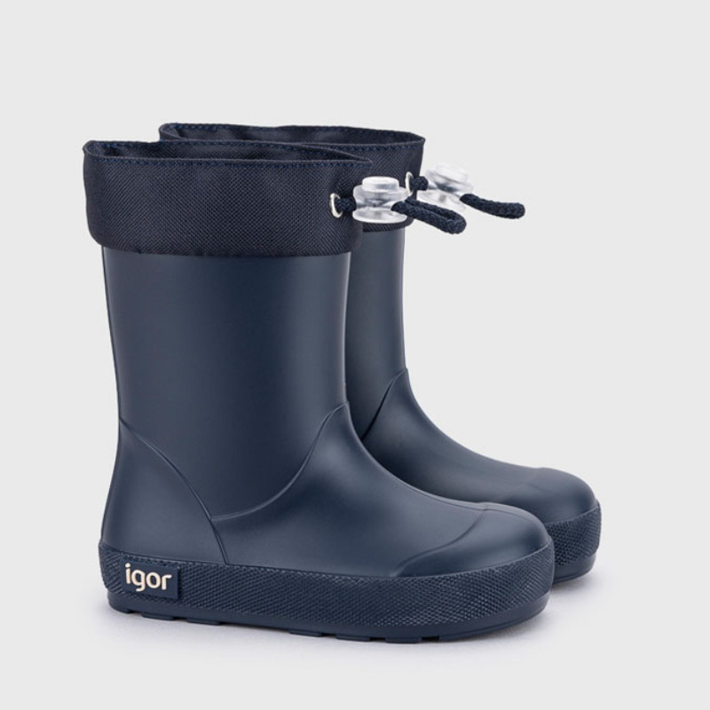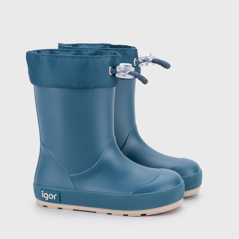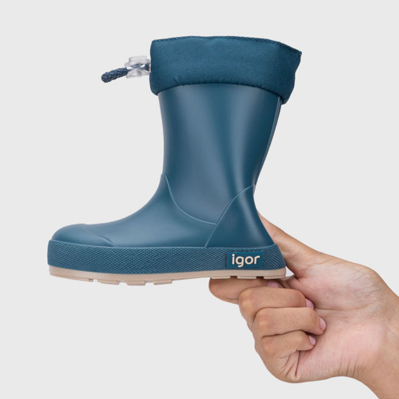 Nejoblíbenější měkoučké barefootové holínky konečně i ve verzi pro větší dobrodruhy! Tvar, ohebnost a lehkost bez kompromisů. Vaše milé děti si mohou dopřát řádění v potůčcích a kalužích, aniž by je boty omezovaly svou váhou či tuhostí. Ve španělských holínkách Igor budou nožky v suchu a v pohodlí. Textilní lem lze dotáhnout, aby do bot necákala voda nebo bláto. Pokud děti nosí nepromokavé kalhoty natažené přes vrch, pomůže lem podržet nohavice, aby ani při divokém řádění nevyjížděly nahoru.