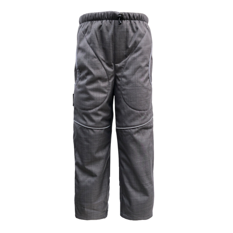 Tradičně  pas do gumy s možností dotažení brzdičkou. Praktické kapsy, nohavice na dotažení gumošňůrou s brzdičkou. Nad koleny je všita dlouhá reflexní pastule pro větší bezpečnost.