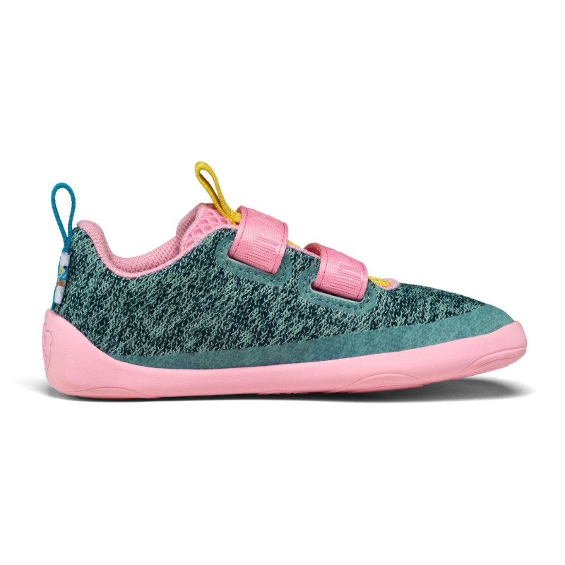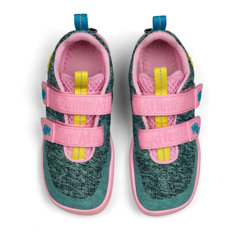 Dětské úpletové barefoot boty ergonomického tvaru - veganské. Ideální volba pro užší až průměrné nohy s drobnou patou a kotníkem. Díky tenké, ohebné a neklouzavé podrážce umožňují přirozenou dynamiku chůze a postupné odvalování chodidla. To spolu s dostatečnou šířkou a místem pro prsty umožňuje přirozený a zdravý vývoj dětských nohou. Boty jsou vyrobeny z polyesterového vlákna a zapínají se pomocí suchých zipů, takže děti nebudou mít s obouváním žádný problém.