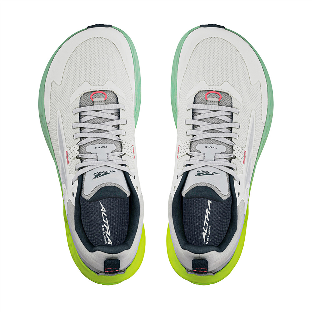 Dámské trailové boty Altra Timp 5 jsou trailový bestseller v objemových běžeckých botách na platformě Altra ZeroDrop™ s širokým patentovaným tvarem špičky. Odolný síťovinový, komfortně polstrovaný a skvěle padnoucí prodyšný svršek má asymetrické šněrování, které lépe fixuje nohu v botě. Při sebězích tak nedochází k nežádoucímu sklouzávání nohy do špičky a zamezí se tím otlakům prstů. Nová přilnavá podrážka Vibram® Megagrip pro bezkonkurenční přilnavost na mokrém i suchém povrchu. Mezipodešev Altra EGO™ MAX poskytuje vysoké odpružení, které tě udrží v pohybu.