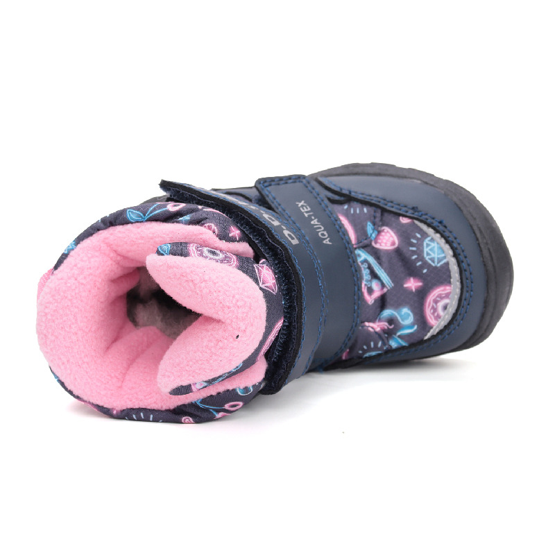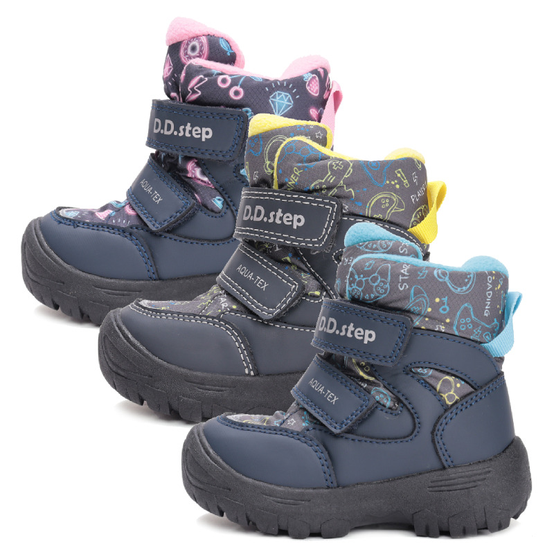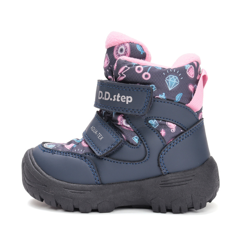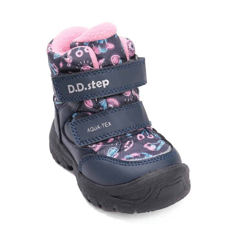 Zimní boty D.D.Step P081-52 splňují vše, co od zimních bot očekáváte. Teplý kožíšek a voděodolná membrána AQUA-TEX zastanou funkci sněhulek. Ohebná, lehká a optimálně protiskluzová podrážka zdolá nejeden zimní výlet. Pevný opatek spolu s precizním dotažením dvěma suchými zipy pomůže zdravé chůzi v každodenním používání. A krásný, hravý design potěší malé i velké.